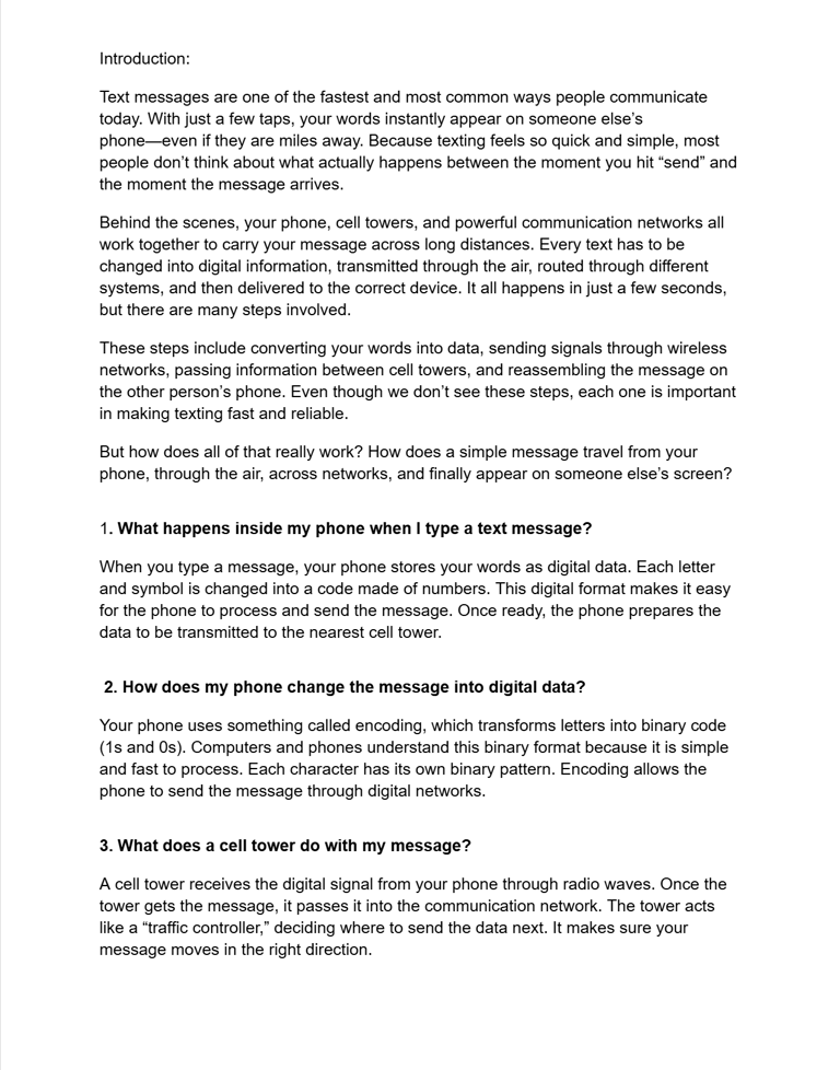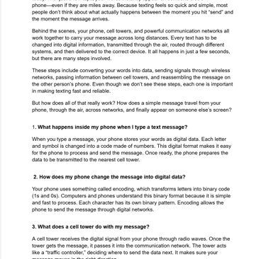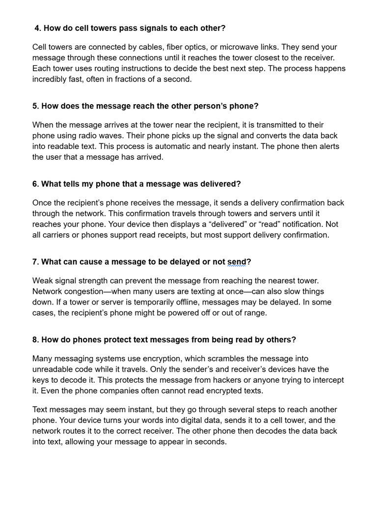 “Explain how a cell phone call works from speaking into the phone to hearing the voice on the other end.”